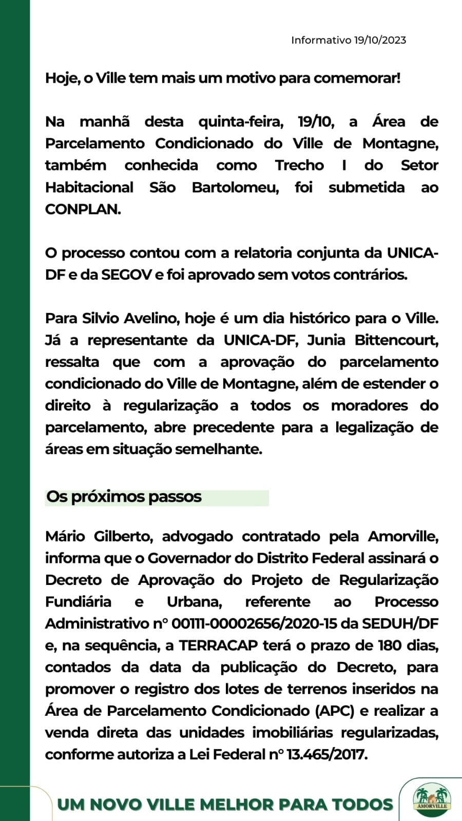 » Clique e Acesse: Comunicado do Dr. Mário Gilberto, Advogado de regularização fundiária do Ville