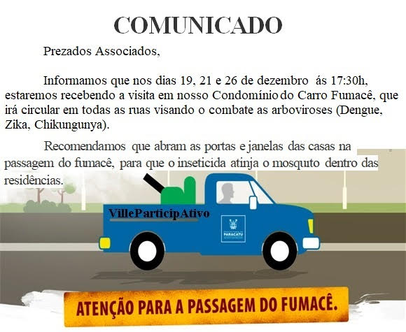 Atenção para a passagem do fumacê