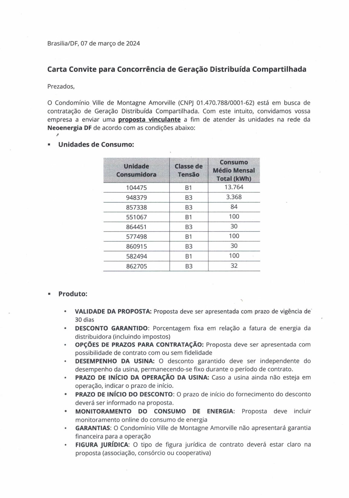 Carta Convite Para Concorrência de Geração Distribuída Compartilhada