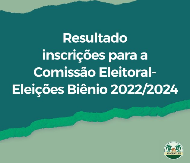 Comunicamos a todos os nomes que compõem a Comissão Eleitoral que atuará nas eleições da Diretoria Executiva e Conselho Consultivo da AMORVILLE para o Biênio 2022-2024: